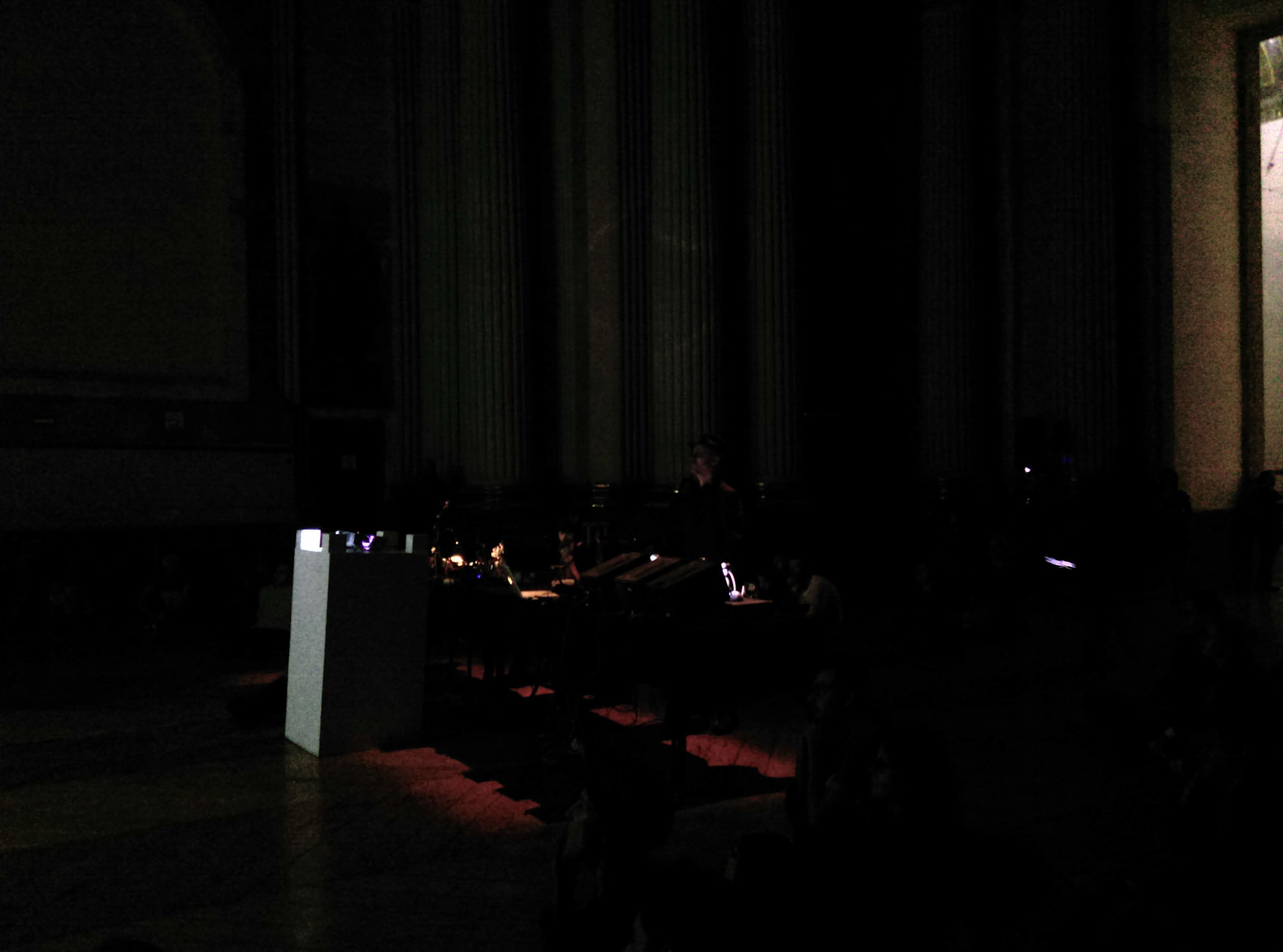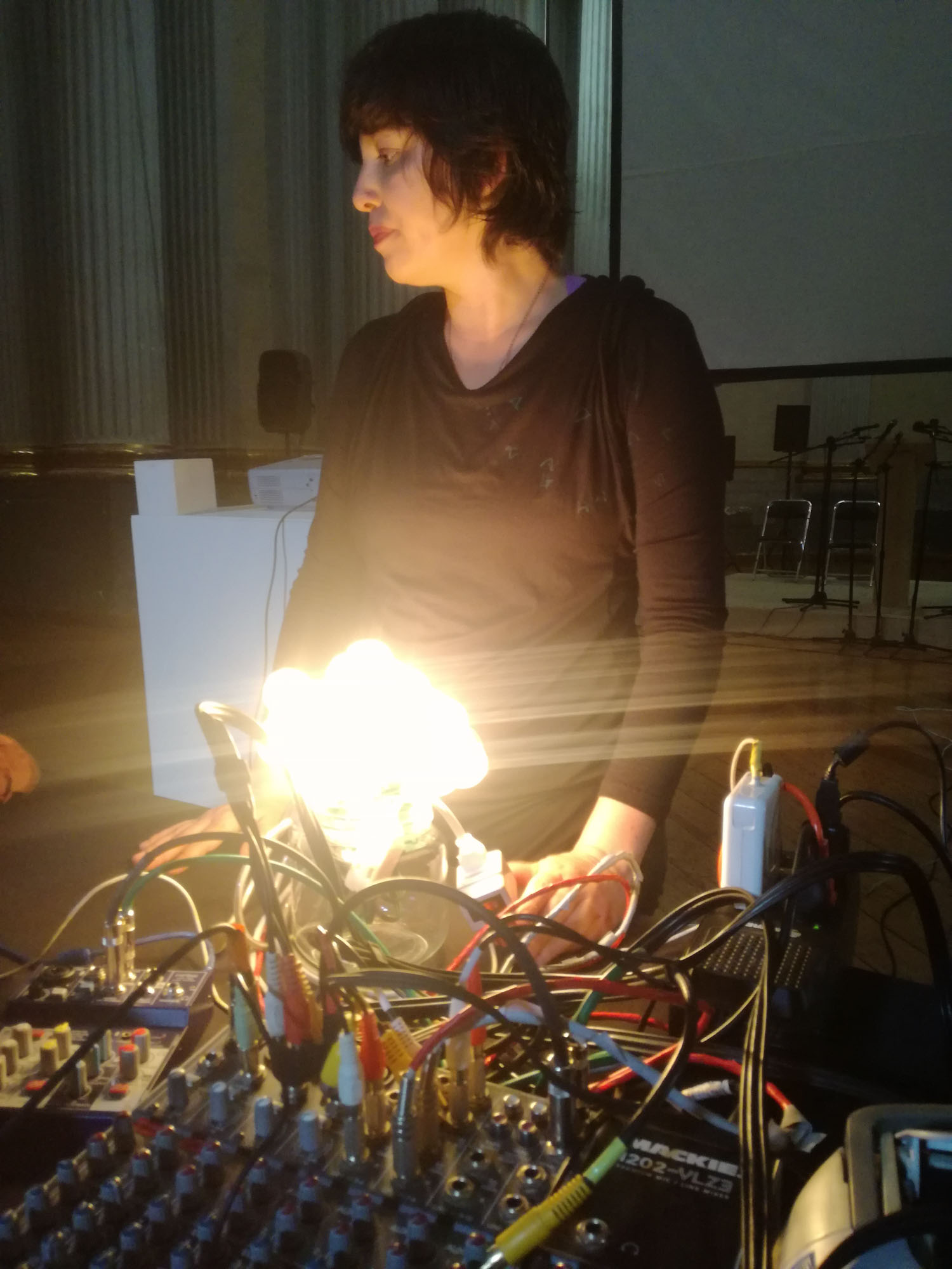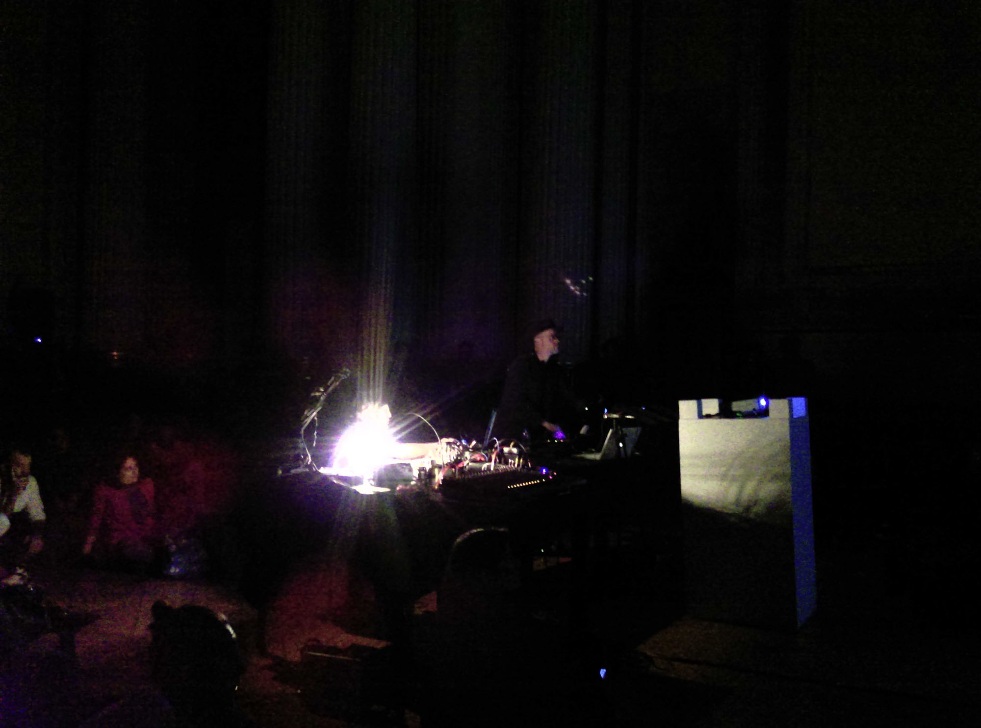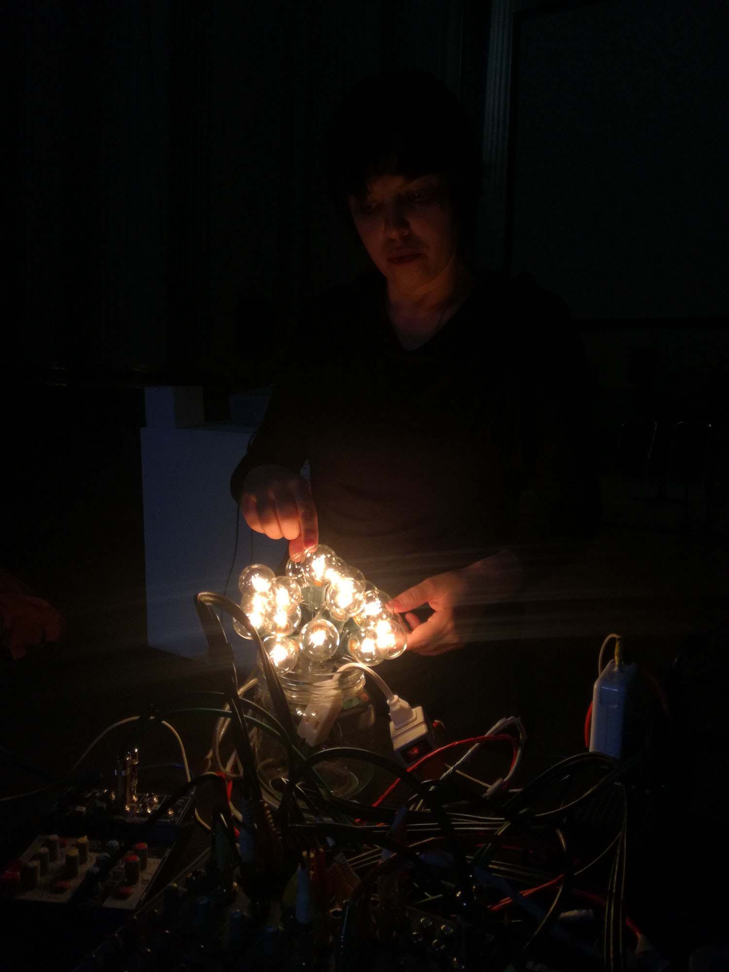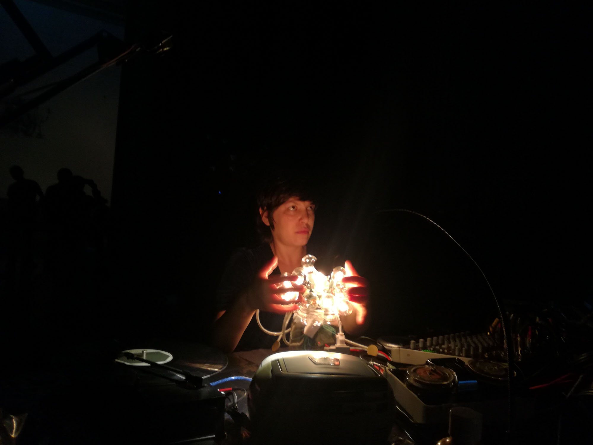 A este desastre intencionado se sumó la exploración sonora de Escobar, quien a partir de registros de conferencias y otros audios de archivo, tejió la base de un ejercicio de improvisación lúdica que sumando la voz, y objetos de uso cotidiano como bombillas de luz y discos de acetato, transformó la dimensión sonora en una experiencia sensorial que reverberó materialmente en la audiencia participante.