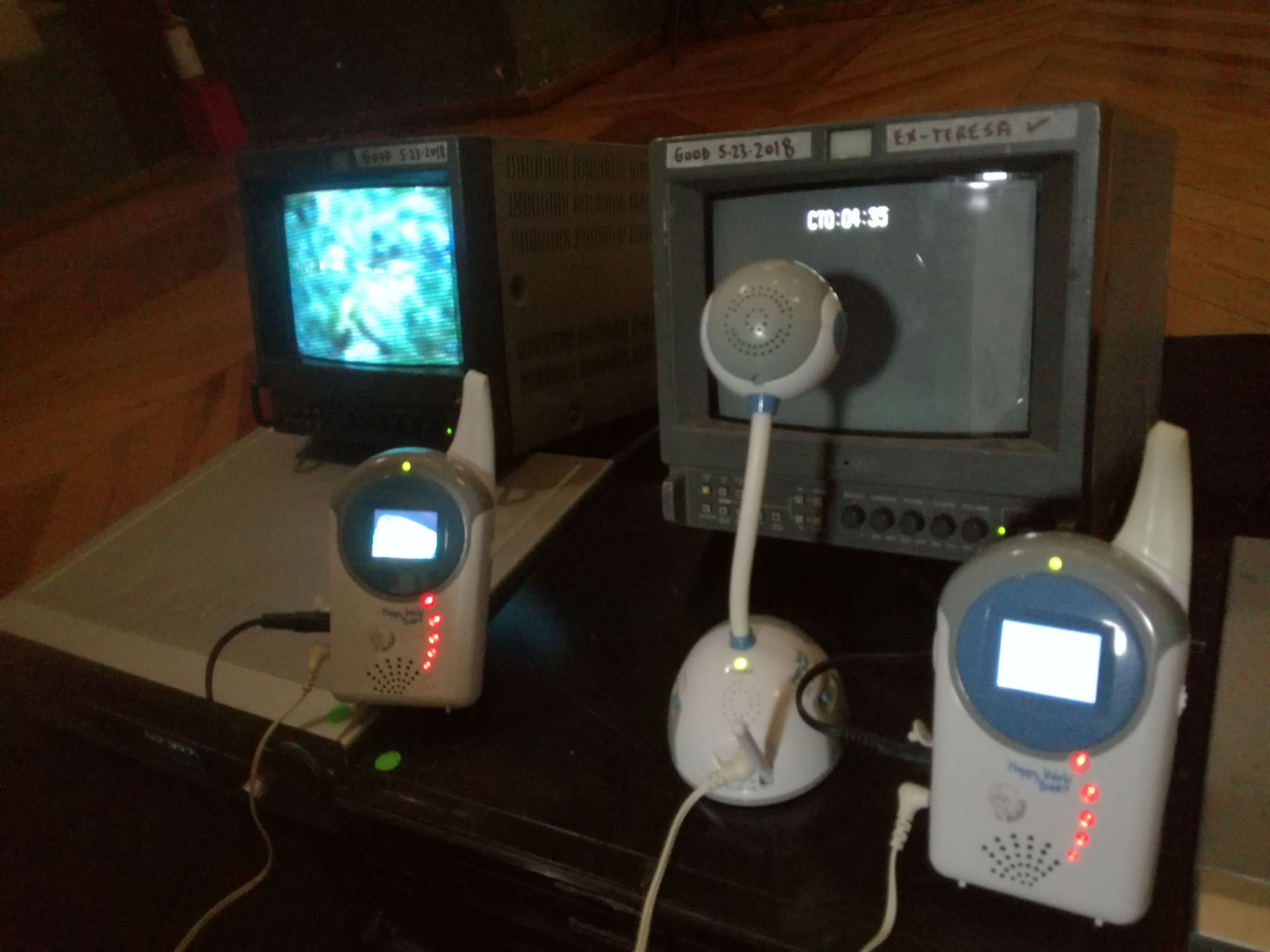 Cinta magnética VHS, archivo de audio pregrabado, voz, discos de acetato, bombillas de luz,